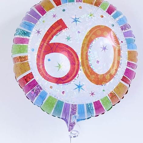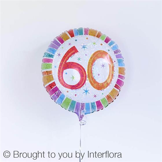 Brighten up their special birthday celebrations with this extra-special balloon. As well as a ‘60th birthday’ motif, the design includes party streamers and stars and an explosion of colour. The circular 45cm micro-foil balloon arrives filled and tied to a weight with curling ribbon.
