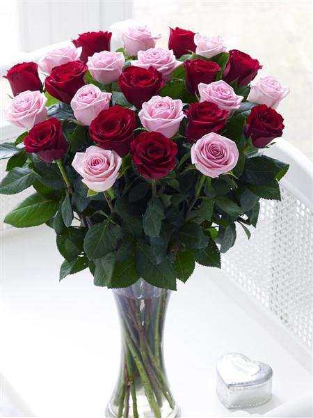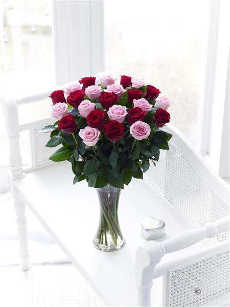 Roses are always a popular choice for special occasions and these attractive fresh blooms in vibrant red and soft pastel pink really show how wonderful they can look. We’ve carefully selected these large-headed roses and arranged them in a tall, elegant vase to create a delightful gift.