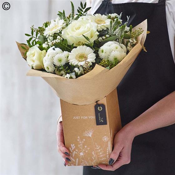 Hand-tied flowers expertly arranged and perfectly presented in a pretty gift box. Each and every design is one-of-a-kind, created by an artisan florist using the freshest stems available on the day so, whilst your gift will look different to the one pictured, it’ll still be just as lovely.