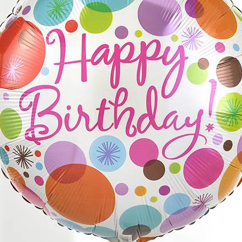 Send your birthday wishes with a wonderful fun round-shaped balloon. This brightly coloured helium-filled balloon features a ‘Happy Birthday’ message and will be tied with ribbon to match and delivered with a balloon weight.