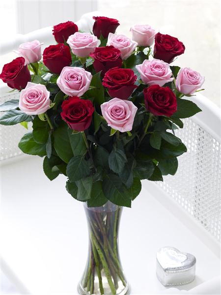 Roses are always a popular choice for special occasions and these attractive fresh blooms in vibrant red and soft pastel pink really show how wonderful they can look. We’ve carefully selected these large-headed roses and arranged them in a tall, elegant vase to create a delightful gift.